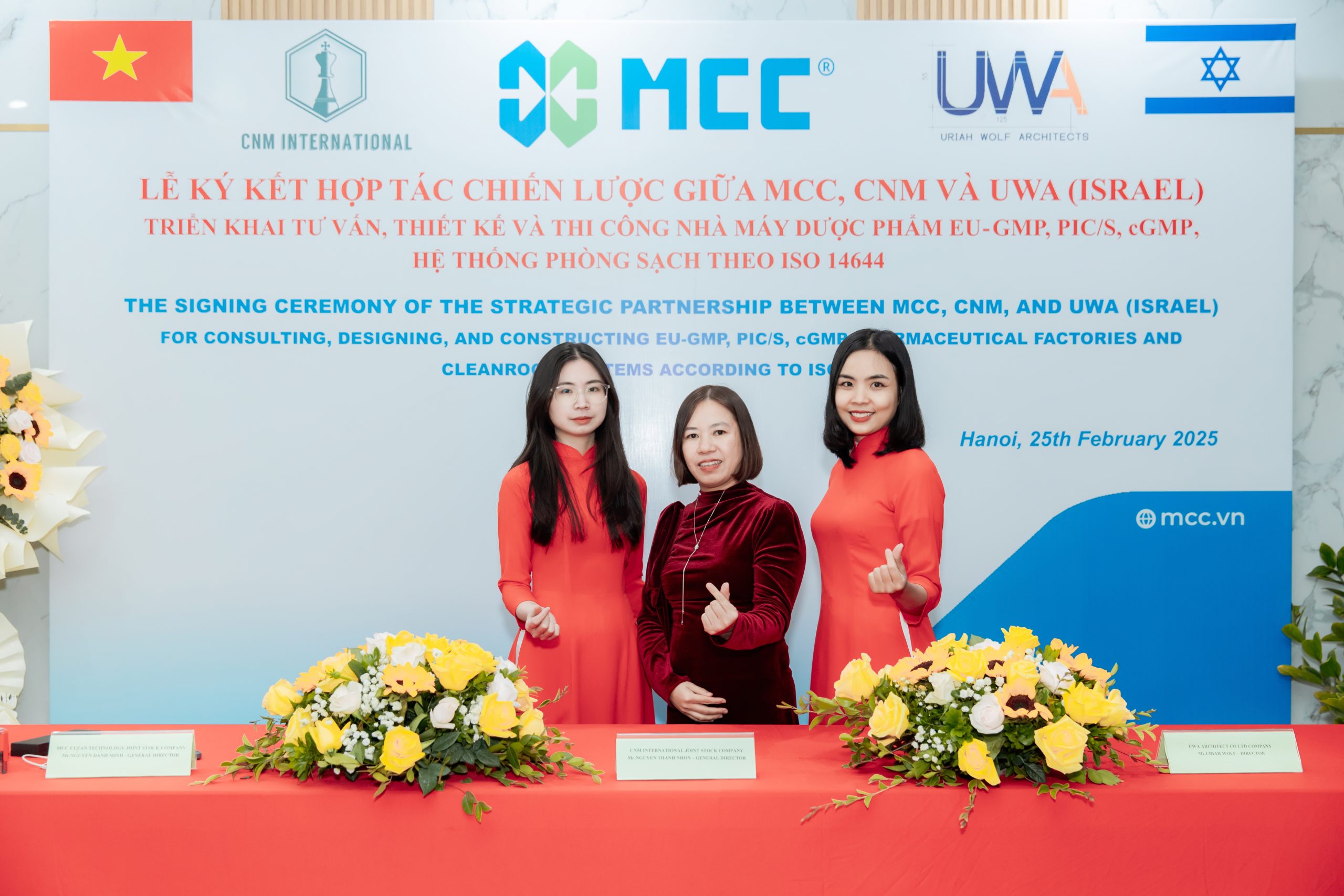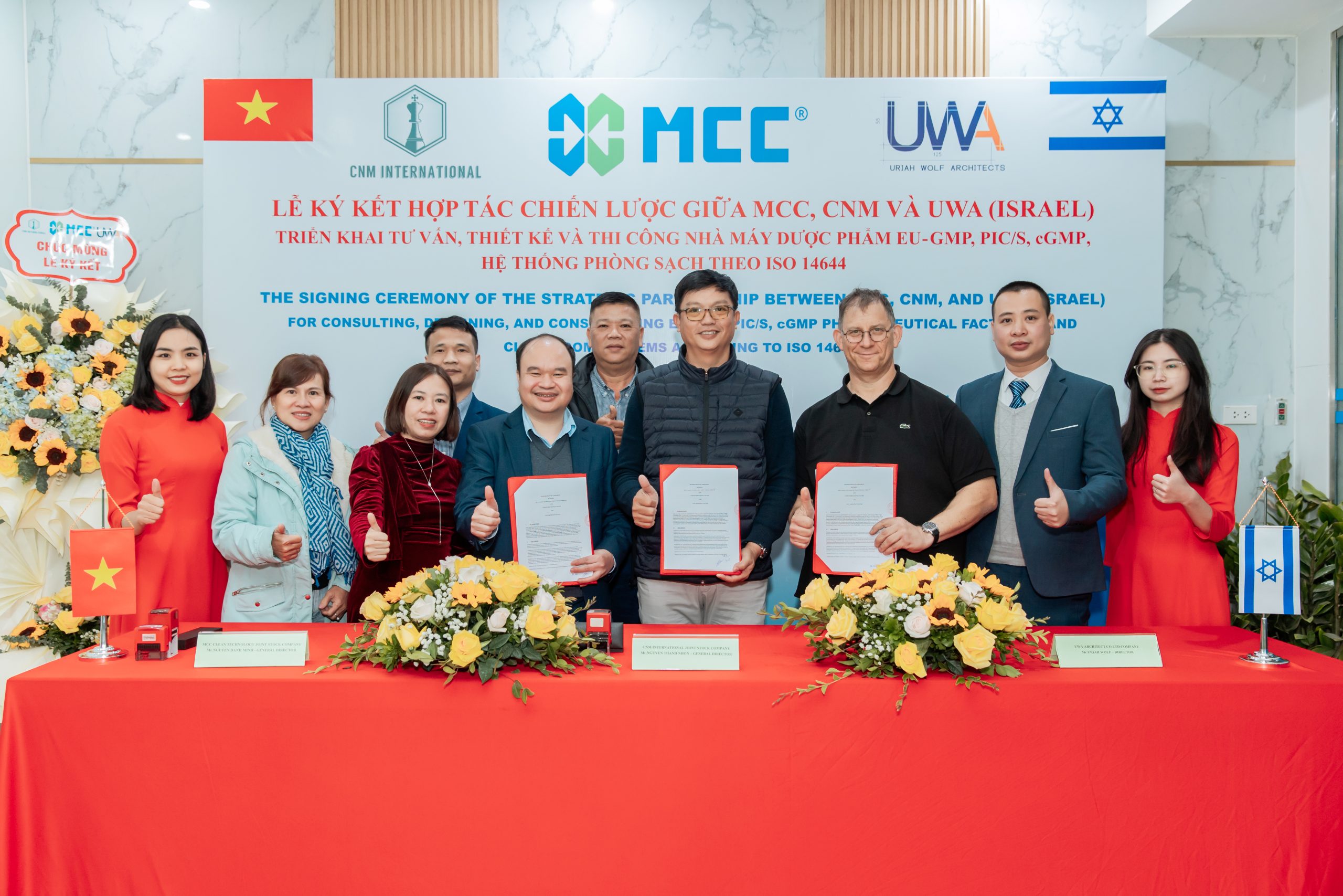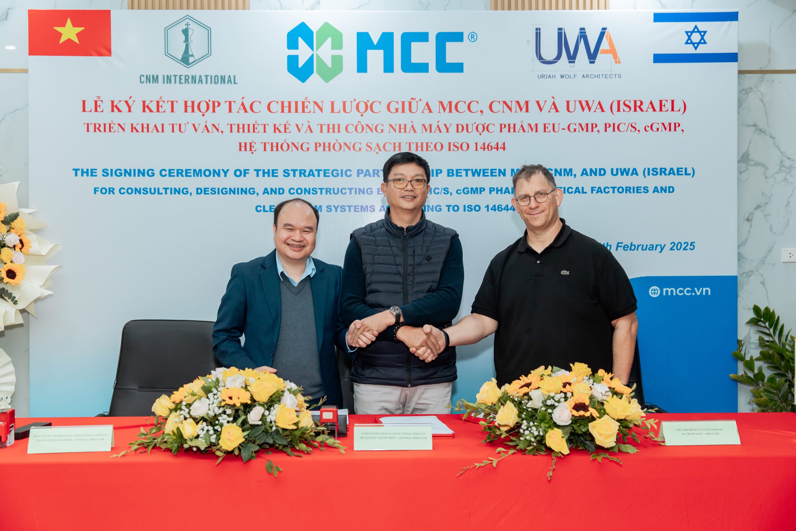 Vào ngày 25 tháng 2 năm 2025, MCC, CNM và UWA (Israel) đã chính thức ký kết hợp tác chiến lược nhằm đưa công nghệ phòng sạch tiên tiến nhất thế giới vào các ngành công nghiệp như Dược phẩm, Mỹ phẩm, Thuốc thú y, Điện tử và Chất bán dẫn tại Việt Nam. Mối quan hệ hợp tác này sẽ tập trung vào tư vấn, thiết kế và thi công các nhà máy sản xuất dược phẩm đạt tiêu chuẩn EU-GMP, PIC/S, cGMP và các yêu cầu phòng sạch theo tiêu chuẩn ISO 14644.